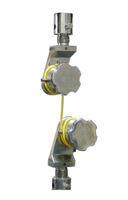 6.纏繞式線繩拉伸夾具:它的zui大負荷是5kN,廣泛應用于直徑為1mm范圍內的鋼絲繩、麻繩、尼龍繩等繩類試樣的夾持。