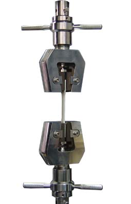 2.對夾式拉伸夾具:它的zui大負荷是5kN,鉗口分為:帶牙平鉗口(鉗口寬25mm,鉗口長25mm)和橡膠面平鉗口(鉗口寬25mm,鉗口長25mm),被廣泛應用于板材、布、紙、金屬箔等試樣的拉伸。